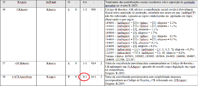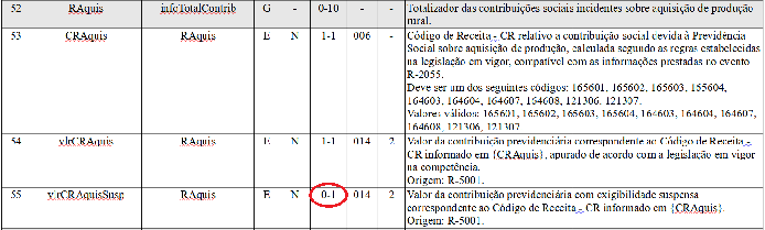 Comunicamos que o campo <vlrCRAquisSusp> dos eventos de retorno R-5001 e R-5011 foram publicados equivocadamente nos leiautes da versão 1.5.1 da EFD-Reinf como de informação obrigatória, sendo que os contribuintes devem considerá-los como campos de preenchimento opcional conforme apresentado abaixo: