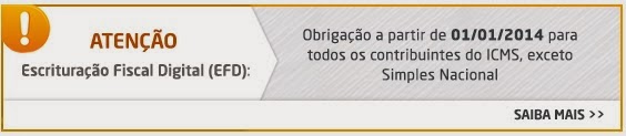 A Secretaria Fazenda informa sobre obrigatoriedade da EFD-Escrituração Fiscal Digital a partir de Janeiro de 2014.