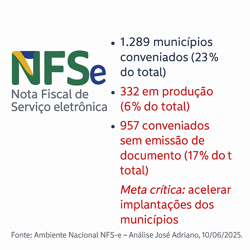 A minha análise vai menos na linha dos 1.289 conveniados e mais na linha dos 332 que efetivamente tem nota fiscal de serviços no Ambiente Nacional, ou seja, apenas 5,9% do total. Desafio gigante para 2025/2026!